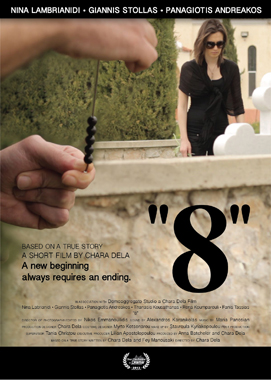 Η ταινία "8" πραγματεύεται την ιστορία της Μελίνας μίας νεαρής κοπέλας, σκηνοθέτη στο επάγγελμα, η οποία έχασε την αγαπημένη δίδυμη αδερφή της σε δυστύχημα, όταν την παρέσυρε με το αυτοκίνητο του ένας τύπος, ενώ βρισκόταν υπό την επήρεια ουσιών.